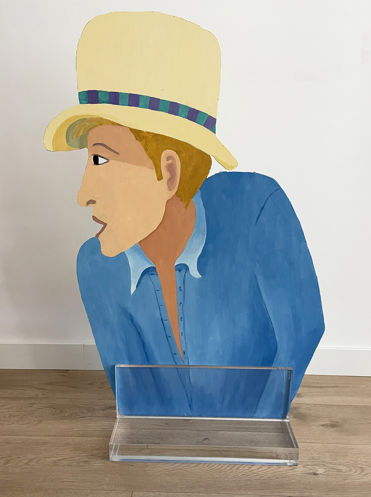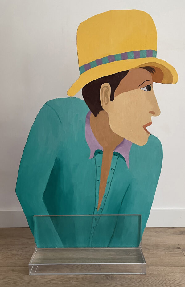 I’m a huge tennis fan. I’ve painted several oil paintings of Wimbledon spectators. This double-sided polychrome iron sculpture is a feature of one of the oil paintings. My work captures a moment of carefree anticipation and joy, evoking the emotions experienced at such an iconic event as Wimbledon. I used iron to bring this bust sculpture to life, portraying a spectator immersed in the moment, their expression and hat painted with detailed brushstrokes of color. This piece not only radiates a light and exciting energy in any space, but also inspires us to capture and cherish the moments of pure happiness and anticipation in our lives.